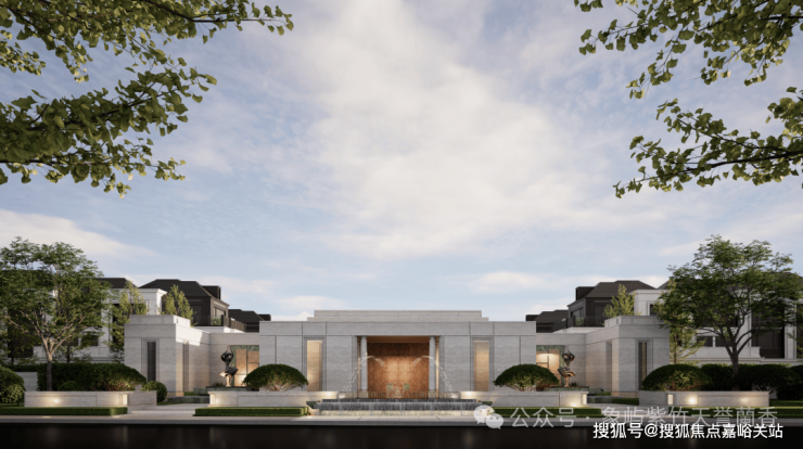 约378米的中轴对称归家轴, 溯源梵蒂冈圣彼得广场的礼制设计,以“放-收-放”的空间节奏引导情绪过渡:进入社区前是开阔的市政道路(放),行至36米宽的南门门庭时,视线被水景与柱廊聚焦(收),穿过门庭后,中央花园的绿意与湖景豁然开朗(放),三步一景间完成从喧嚣到静谧的转换。