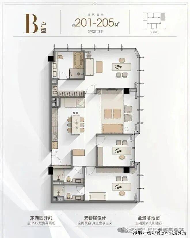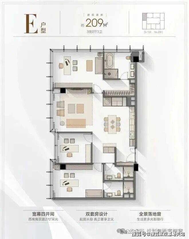 5️⃣户型优势:4.2米层高,全落地窗设计,多套房设计满足三代同堂