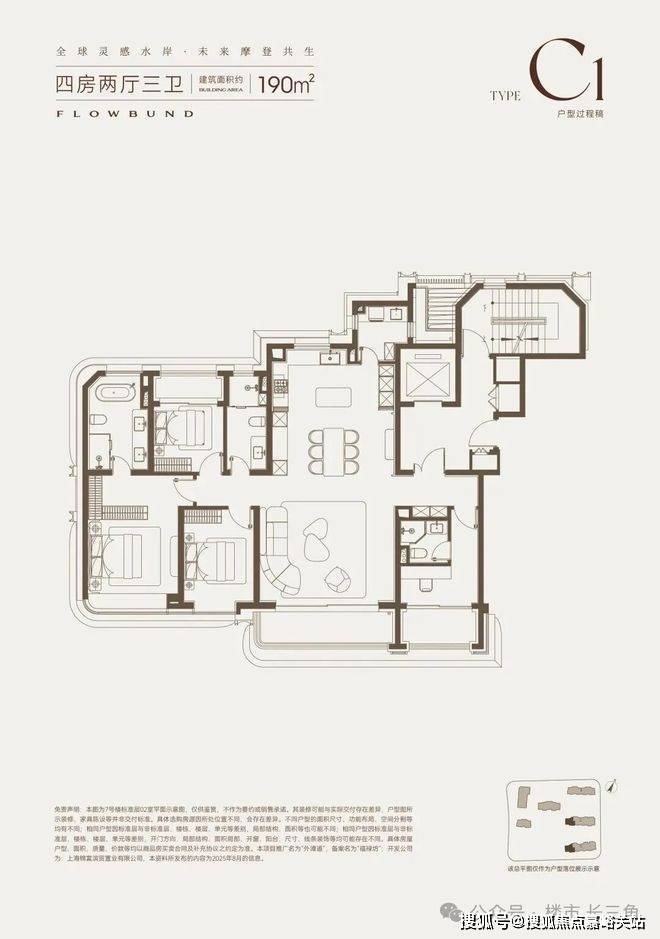 建面约190㎡的4房3卫户型,南向双套房的设计,保障了居住的私密性。