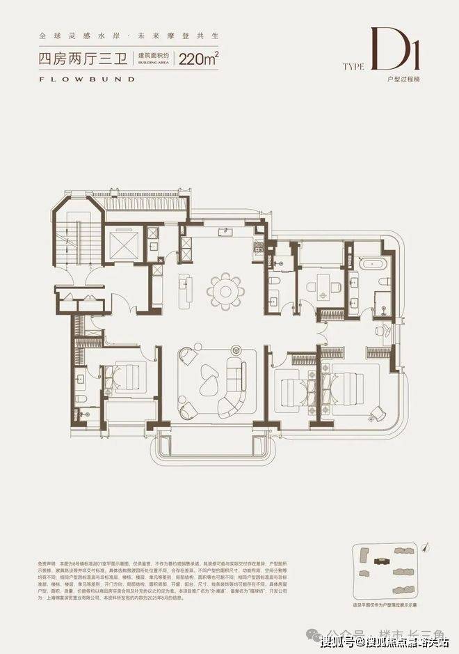 建面约220㎡产品位于整个社区的楼王位置,南北毫无遮挡,坐拥一线江景+社区中央核心景观带,视野拉满。