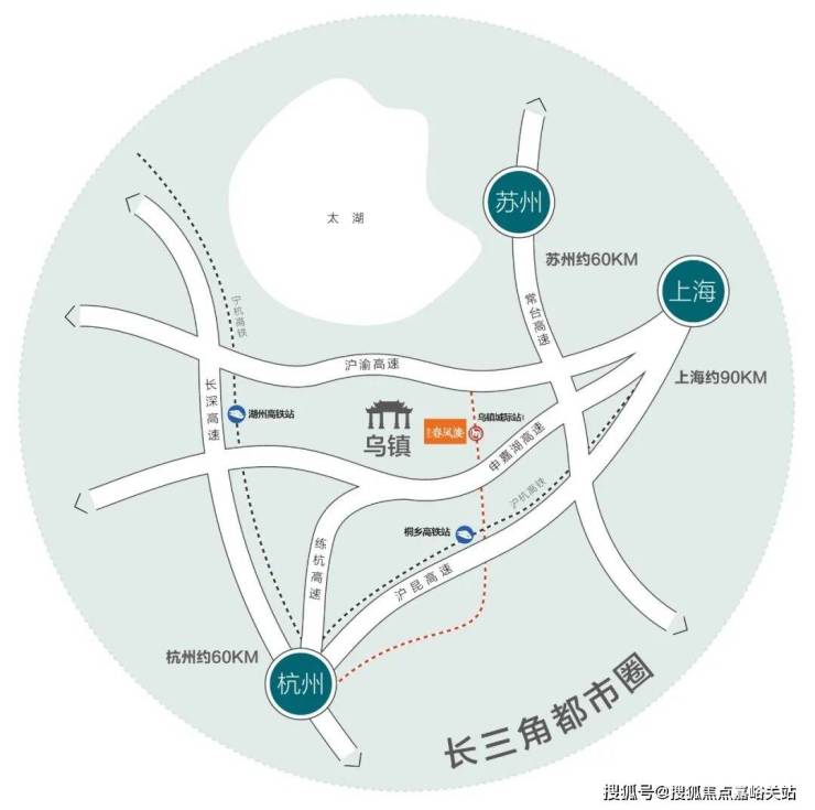项目周边交通十分便捷。高铁: 桐乡高铁站,城市公共交通:步行5分钟可至黄家桥站, K281路、7615路公交车经过,(K281路:乌镇汽车站-桐乡汽车站-桐乡高铁站)(7615路:乌镇-苏州吴江区)同时,乌镇板块内还规划了 城际轨道湖嘉杭绍线,将于项目旁设有站点,未来将形成沪苏杭半小时通勤圈。
