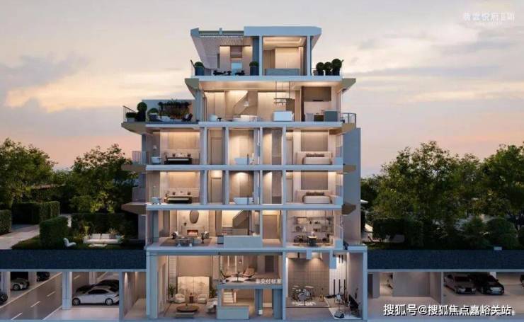 在建筑形态上,项目以全新结构形态, 创新打造“流瀑五叠”形制与“二跃三”立体格局。五层建筑如水瀑般层层递进,打破呆板堆叠;二跃三格局让上叠拥有了完整的三层空间,彻底告别“阁楼+露台”的局限。