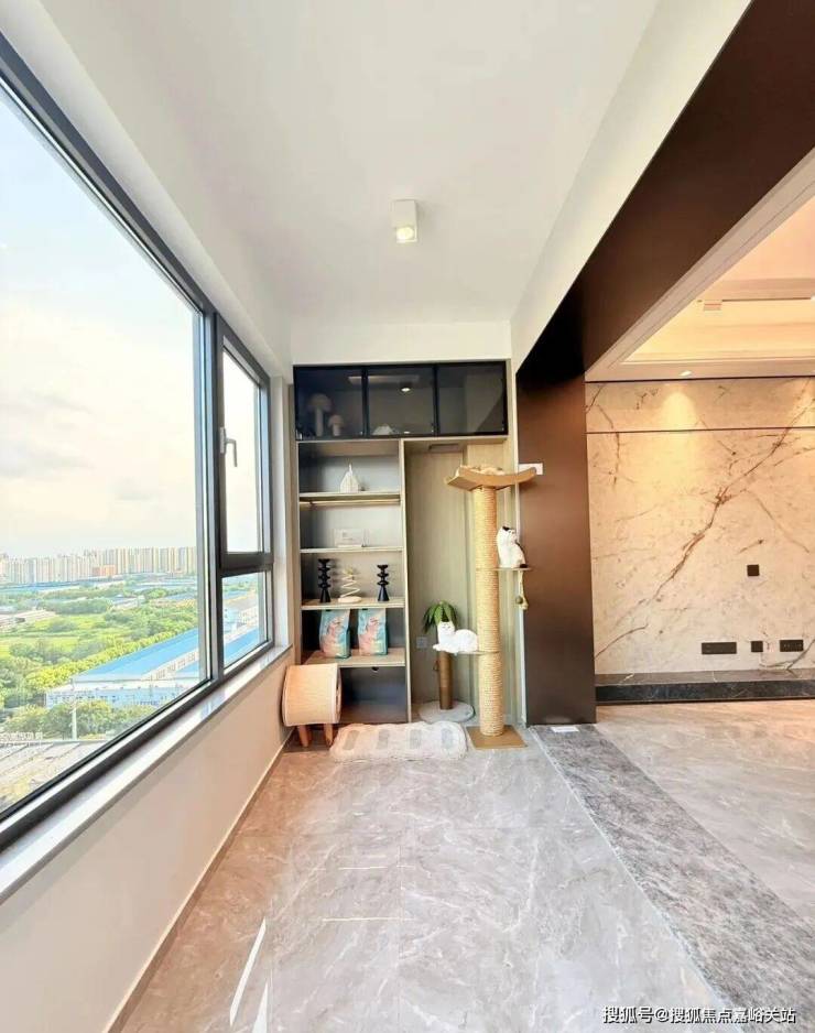 建面约105㎡为5.1米宽厅设计外接大阳台 ,这对黄金组合一方面撑开户内尺度,另一方面也让通风和采光俱佳。