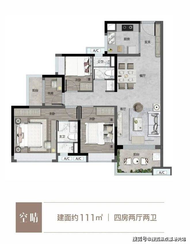 在一众户型里,房产君尤其钟爱建面约127平四房产品。