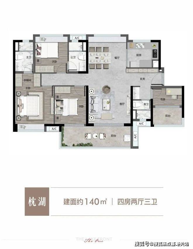 这个建面约127平的四房,做出了难得的四开间朝南、南向望湖,站在景观阳台之上,就能把风景装进家中。