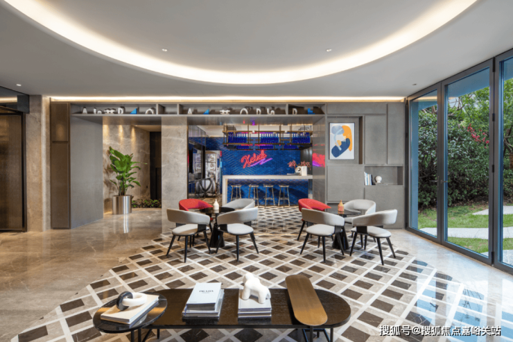 还有吧台、休闲洽谈区、共享会议和健身等功能区,是一个适合交友、会客、休憩、工作、读书、赏景的多功能空间.处处可见的时尚元素,符合当下年轻一代喜好。