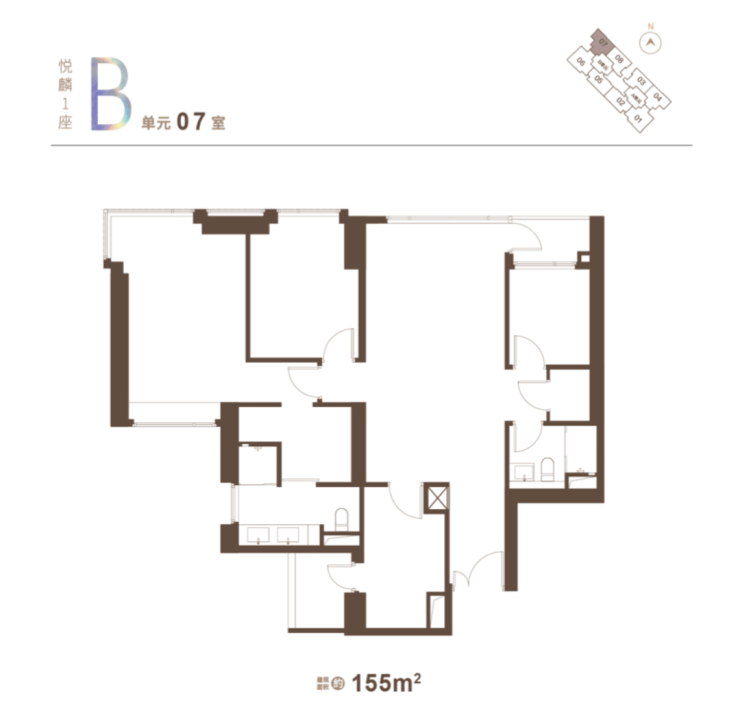 户型一:约151~154㎡户型图