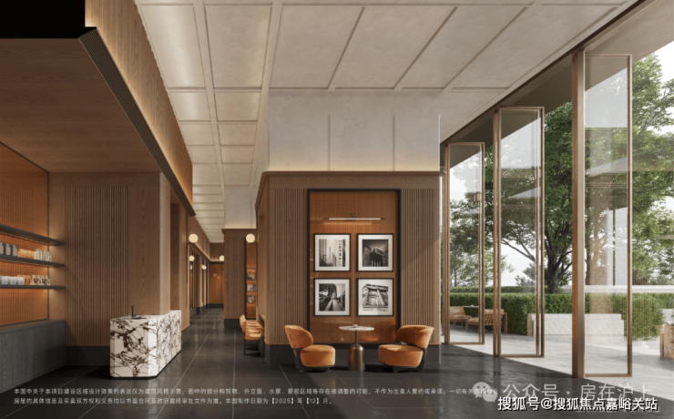 项目另一大亮点在于东侧主入口的设计。不同于常规门头,项目采用四进式布局:从标志性的“玖系”隐奢门头启程,经过仪式感十足的公馆草坪,再到营造社交氛围的聚场空间,层层递进,步步皆景。
