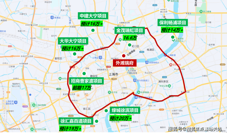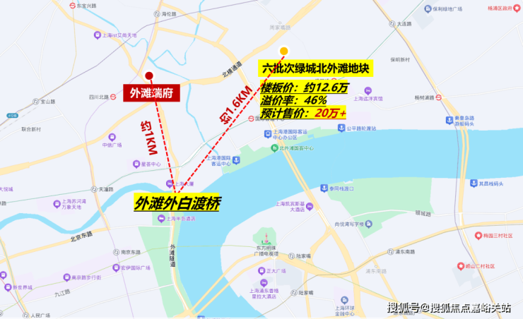 今年六批次土拍, 绿城竞得北外滩新宅地,溢价率超过46%,未来售价预计突破 20万元,它的位置就在「外滩瑞府」东侧约1KM。