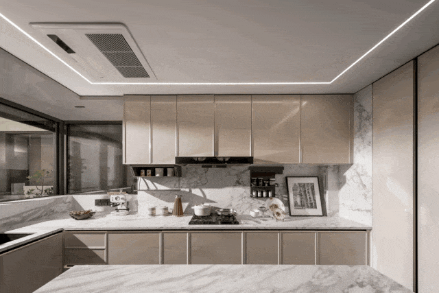 静音设计涵盖 低噪厨电、同层排水、缓冲阻尼及中央排烟降噪技术,营造安静烹饪环境。