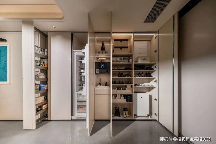 项目的 收纳系统也做得让人叹为观止。以124户型举例,步入玄关,就有约6米长的交付空间装得下生活的所有琐碎。