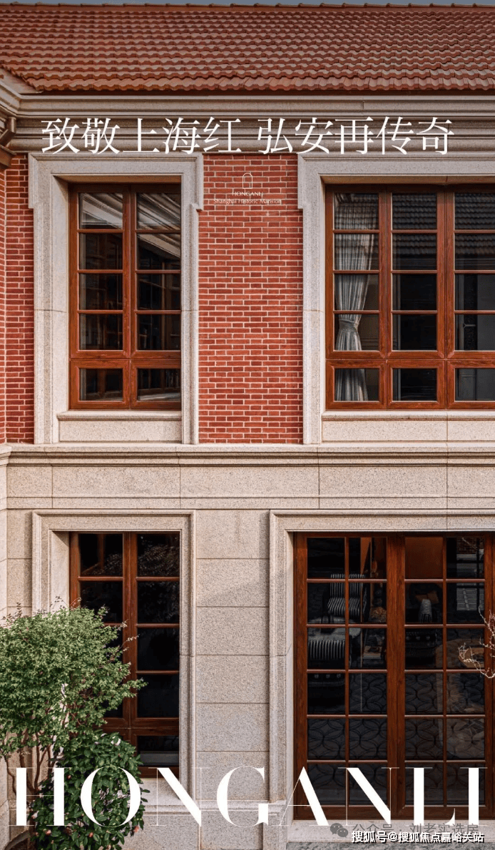 建筑立面采用大面青砖,辅以局部 红砖腰线与仿木质感门窗人字形山墙与小青瓦屋面共同构成经典海派轮廓,对原筑风貌进行递延式表达。