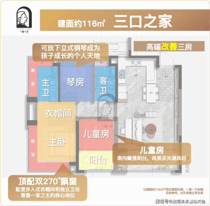 约116㎡主力功能户型:为成长留白,适配家庭全周期