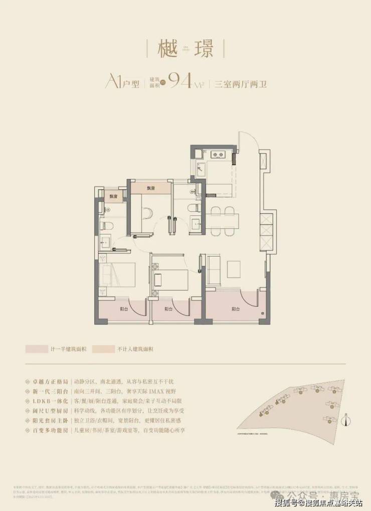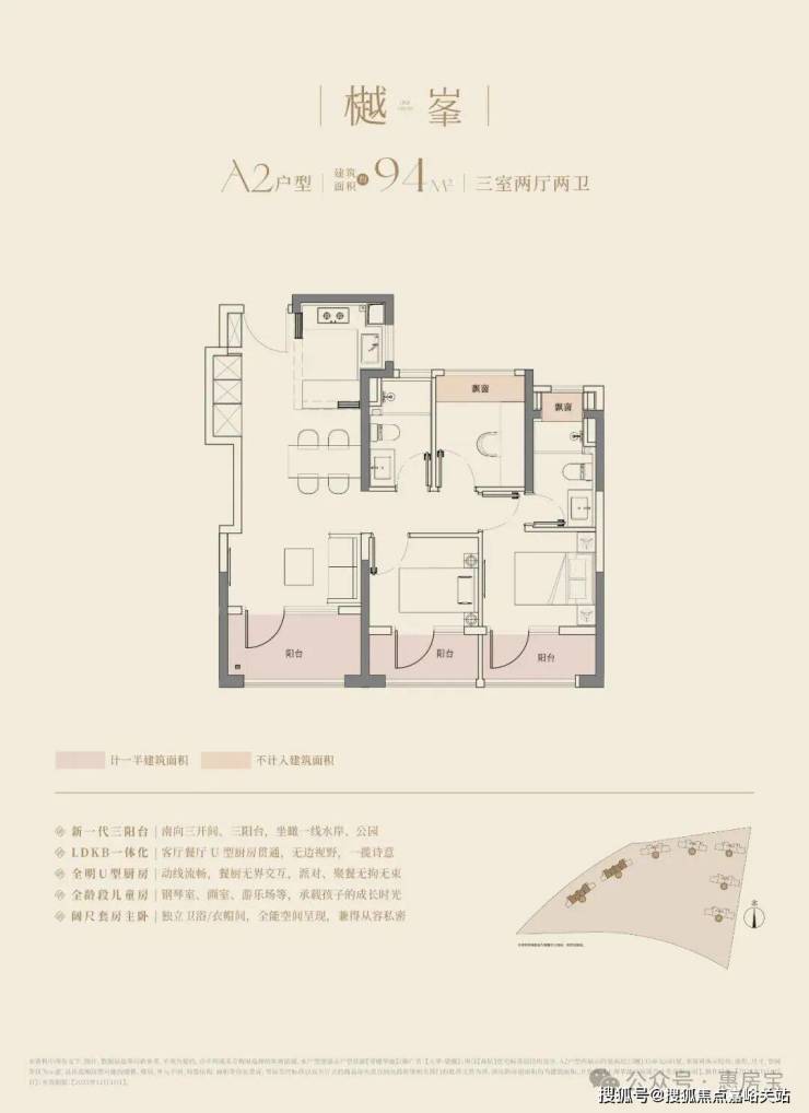 建面约94m3房2厅2卫