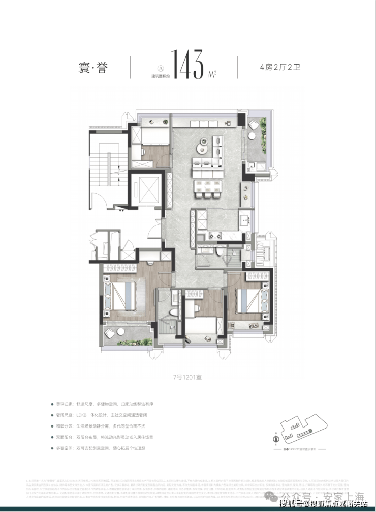 作为上海首批“好房子”新规落地范本,「誉静安」未止步于单一标准的复刻,而是深度贴合上海高端家庭需求,开创性打造3.5 代宅,其约143㎡宽奢四房堪称“空间教科书”——