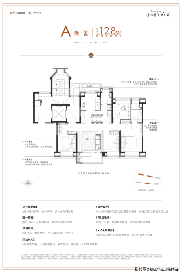 ◎ 真四开间朝南: 据统计, 2024年至今的上海新房市场中,建面在125-130㎡产品只有约9%做到了真四开间朝南,而地铁口的4房产品更是少之又少(数据来源于网络)。