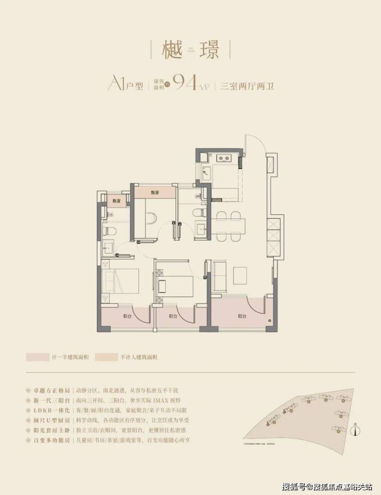 在这里,高层建面约94㎡户型做到了惊人的 三阳台, 对比同板块内以前的标杆小区,同面积段户型只做了1个阳台。不仅数量发生质的变化, 实得面积 也大大增加。