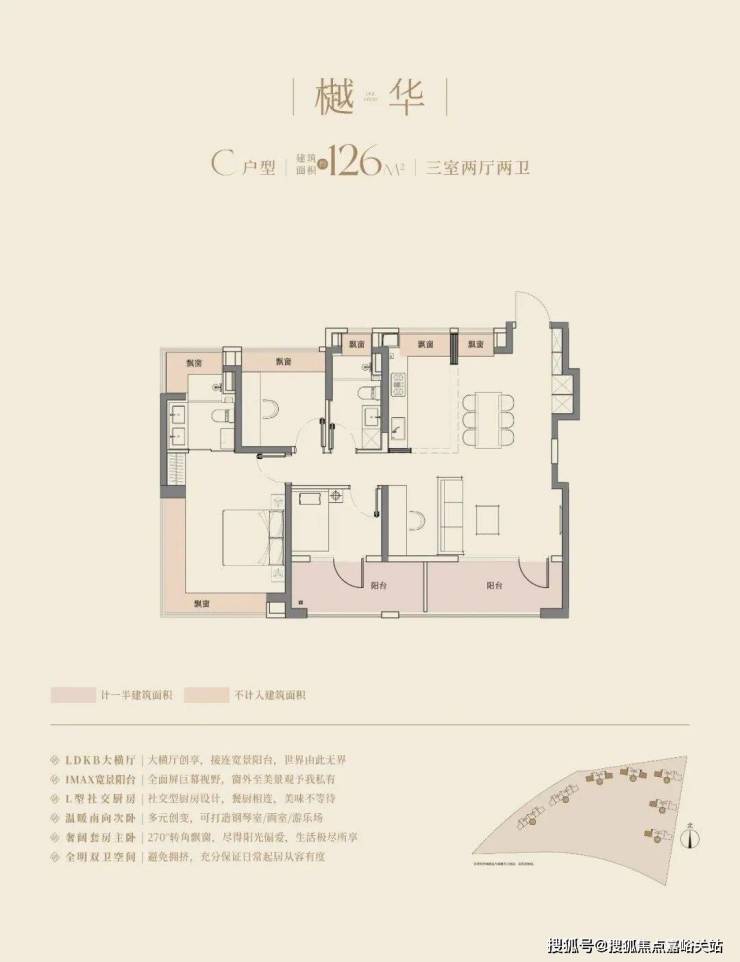 建面约126㎡三房两厅两卫,南向的总体面宽达到惊人的约 13.2m, 可以媲美市面上很多150㎡起步的豪宅产品的面宽了。