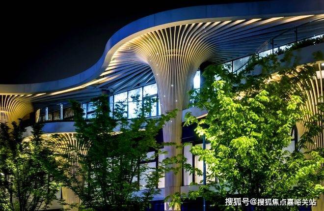 建筑风格:现代简约风,仿铜色 + 深灰色铝板搭配大面积玻璃,360° 无死角颜值,历久弥新