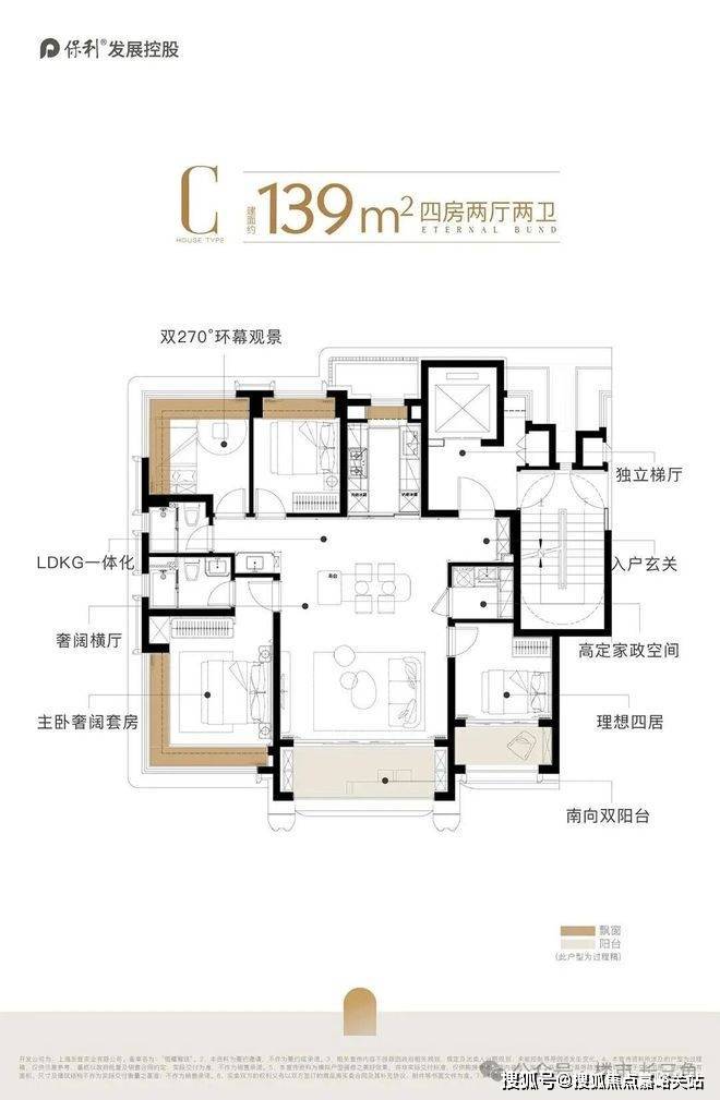 通过“全屋飘窗(全赠送)+双南阳台(半赠送)+独立电梯厅”的精妙组合,这套139㎡户型的实际得房率逼近95%,远超市场75%的平均水平。