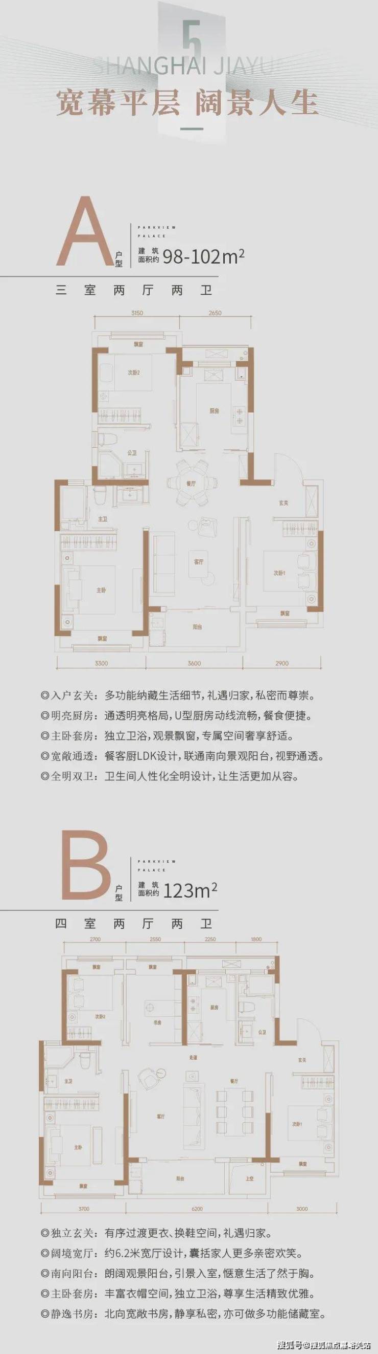 建面约98-166㎡精装3-4房