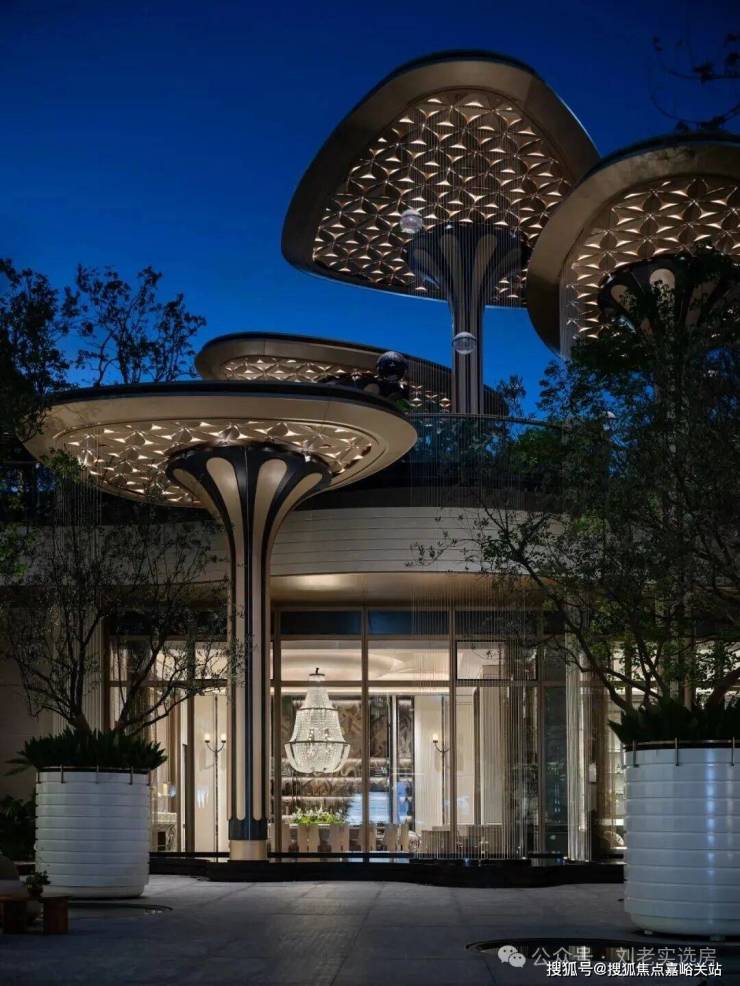 首先项目的入口是真的惊艳,门头顶部的500多片镂空透光铝板雕花花瓣,皆由项目LOGO精琢演化而来。这是3000万重金雕琢的细节,更是对品质的无声承诺