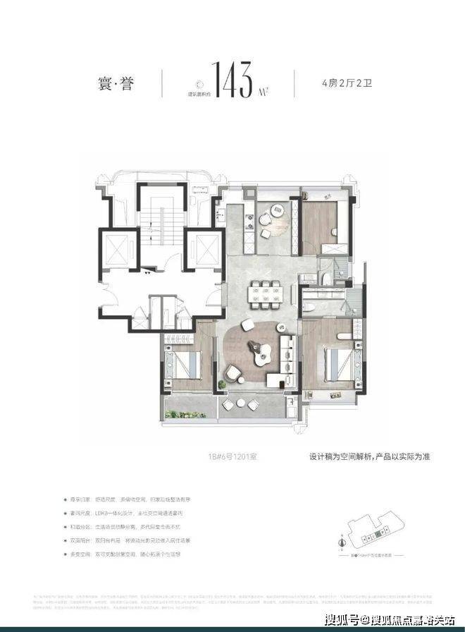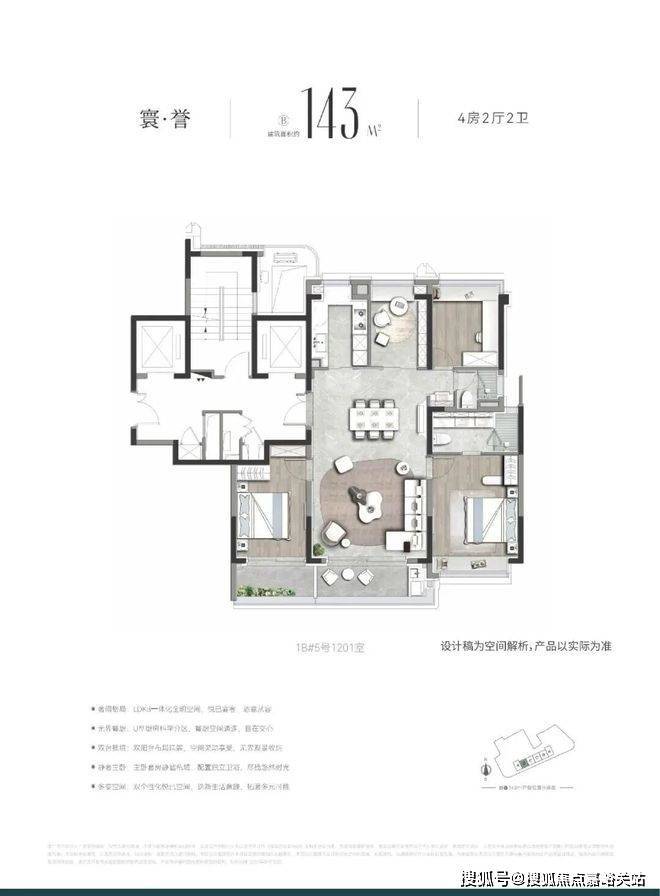 王炸边套A户型是三面采光户型,客厅连接阳台,视野出众。