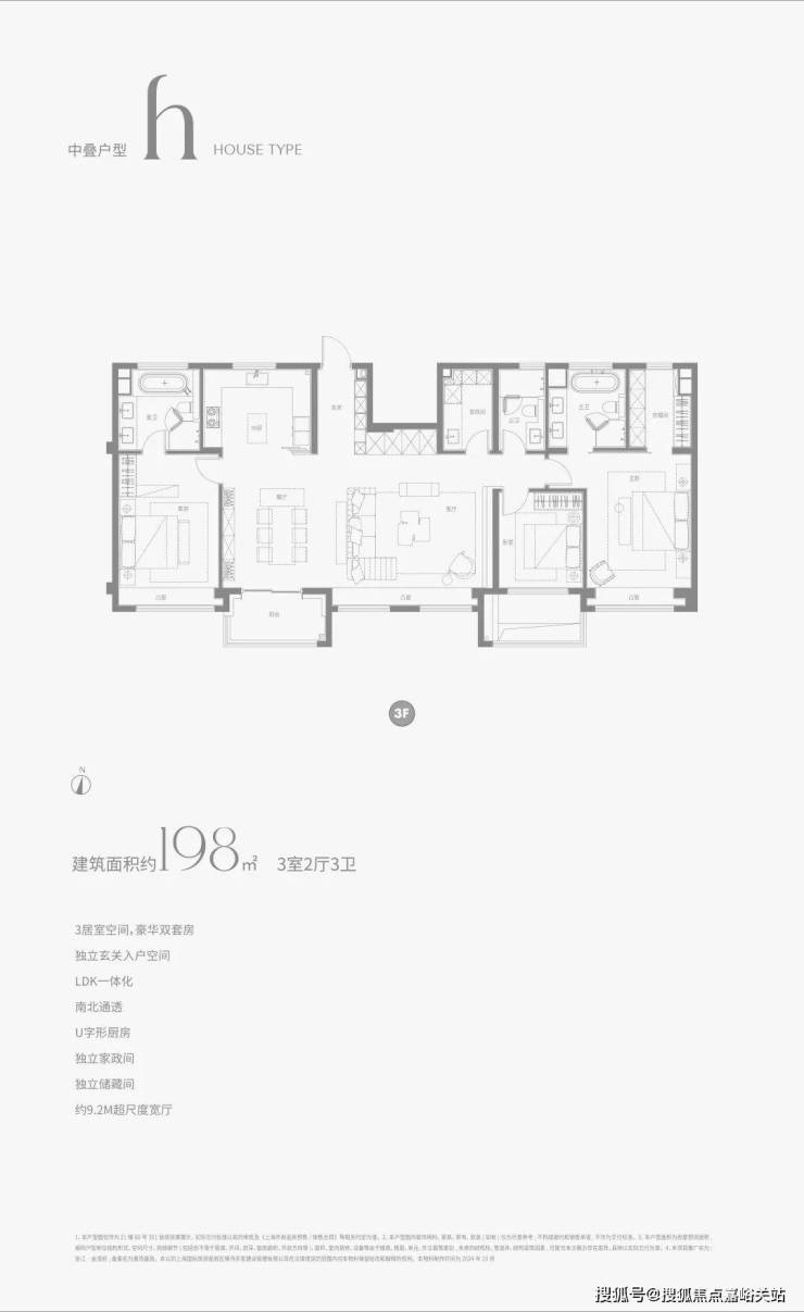 建面约138㎡的中间套户型,与边套略有差异,但同样尺度感强、细节满满