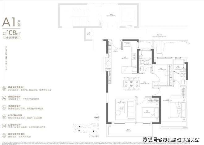 首先是进门即映入眼帘的LDBK一体化设计,搭配X灵动空间以及巨型宽面阳台,奢阔尺度非常出众;主卧约270°的转角飘窗,视野和采光全部拉满。