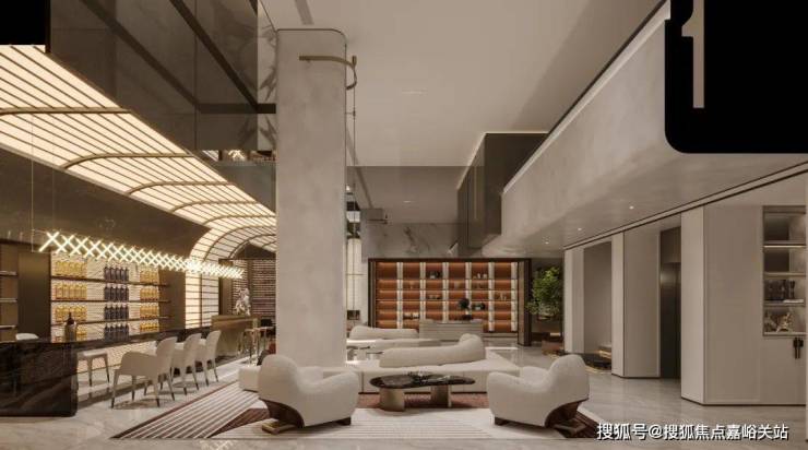 一层是会客区, 约10.7米的超大面宽 ,阳光、空气可以“肆意”穿过,室内通透明亮。