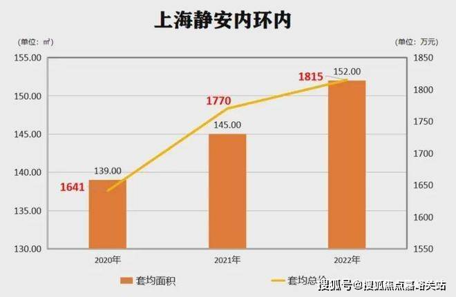 拉取最近三年静安内环内的新房数据,可以看出,新房的套均总价从2020年的1641万攀升至2022年的1815万,套均总价涨了近200多万。
