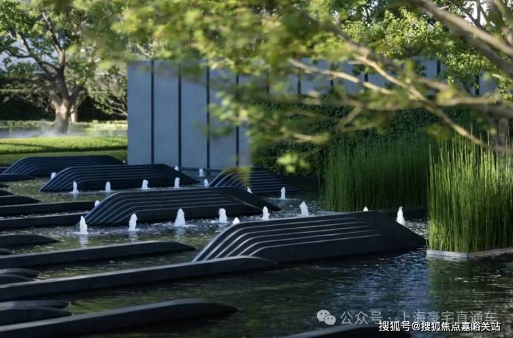 景观设计方面,保利世博天悦采用 引江入园、以水带路的手法,将滨江舒阔的国际生活平移到社区内,打造约 6万㎡景观秘境,媲美全球奢华酒店。采用大面积的留白和现代禅意的表现手法,呈现开阔舒展的质感。