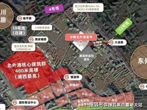 交通枢纽 :步行约 700 米可达地铁 4/12 号线大连路站,3 公里内覆盖北外滩 CBD、陆家嘴、外滩等核心商圈;紧邻大连路隧道、新建路隧道,快速通达浦东浦西,内环、中环高架环绕,全城高效畅行。