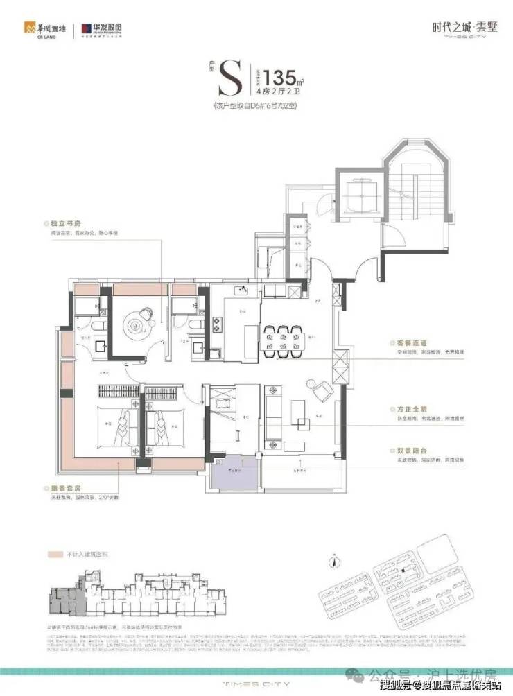170m²上叠,南向双阳台+南北双露台: