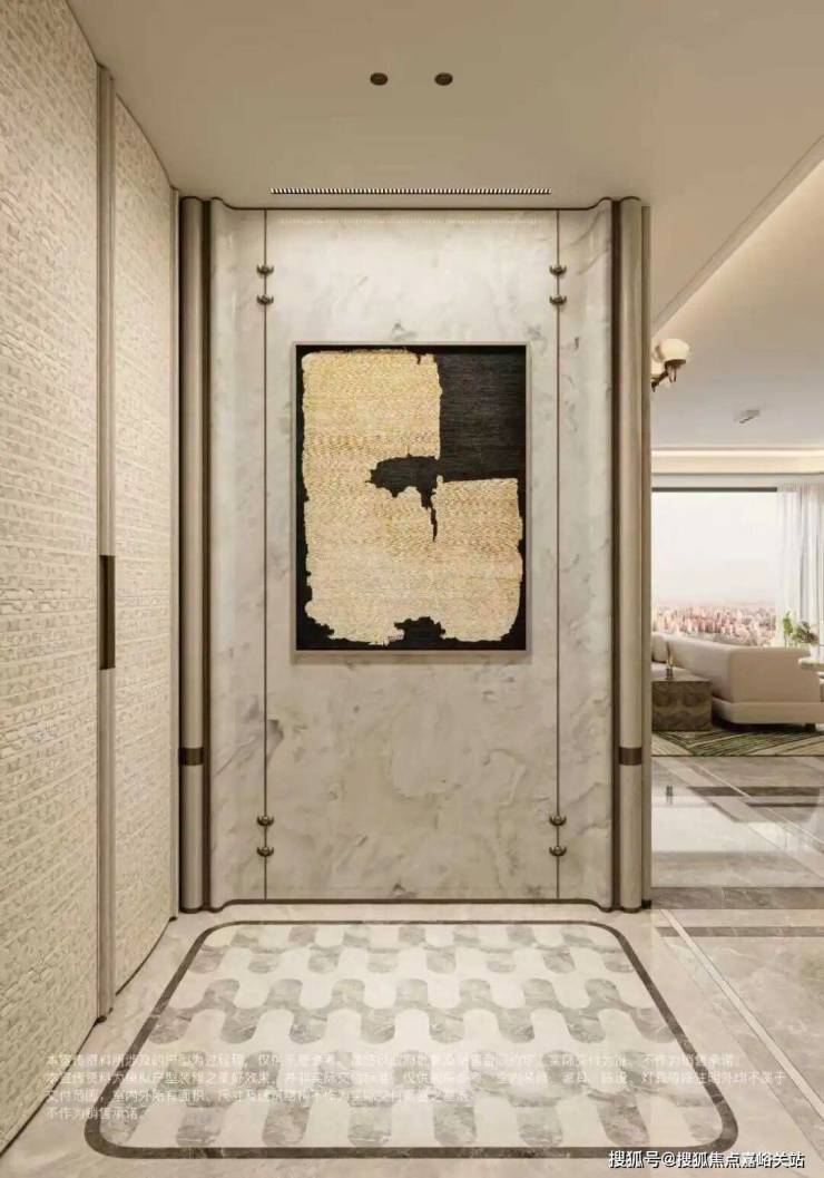 约2㎡玄关拼花采用 胜利拱券 × 全水刀工艺! 超高压切割让石材切口平整无崩边,结构更稳定,搭配天然石材的高硬度属性,长久使用依旧光洁如新,省去后期维护烦恼。 保利外滩曜售楼处电话:400-889-4986 VIP 尊享热线✅✅