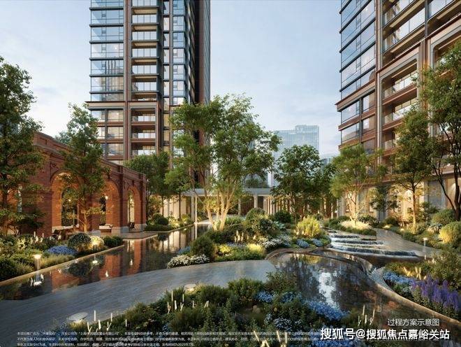 从九龙路起步,在繁花水岸的滨水步道上漫步归家 ;归家之路在滨水艺境另一侧,是 约7000㎡的沉浸式邻里风貌街区 ,融合党群服务与邻里综合体业态,可在归家路途中感受精致烟火气;之后抵达九龙路归家主入口的河岸艺术大堂,两条地上细分动线,藏着不同的归家意趣:一条从主入口艺术大堂步入,沿着风雨连廊穿越花园小径,光影透过叶片洒落脚边,风携花香漫过肩头,仿佛逛完一场印象艺术展;另一条则经 风雨连廊直抵“艺术品展列空间”泛会所,或许邂逅正在展出的私人藏品,在艺术氛围中完成圈层身份的过渡 。最后步入电梯厅,半圆弧形天花吊顶暗合“天圆地方” 东方哲学,让归家终拾恢弘而宁静的仪式感。
