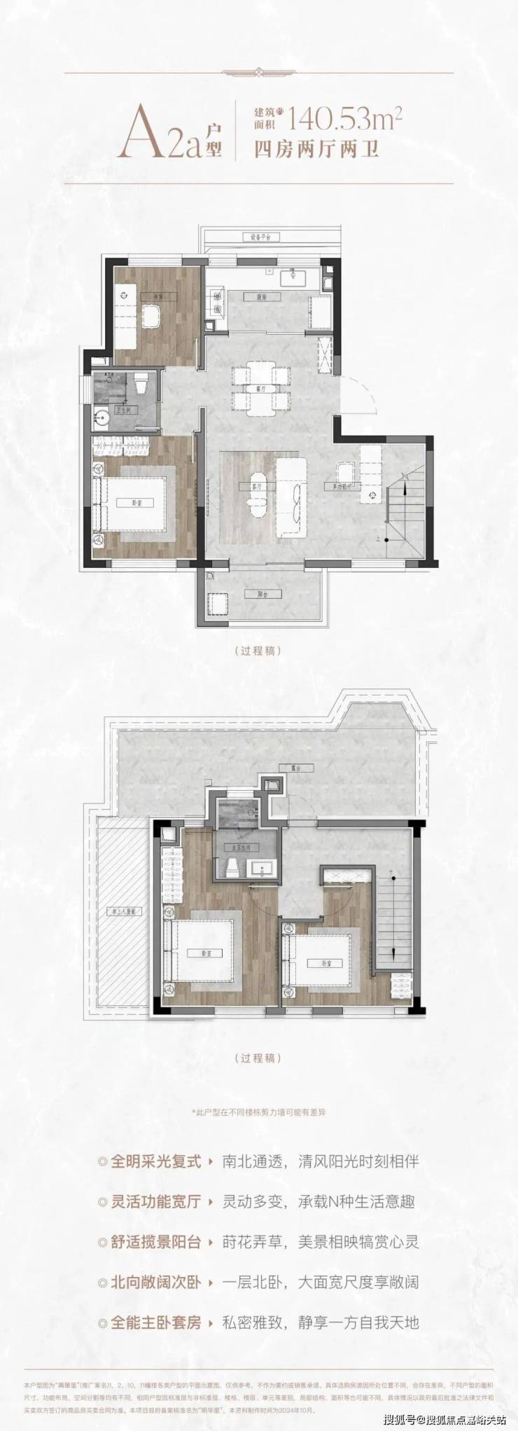 二层可做双孩房或孩子+老人房,全部南向,采光平权。