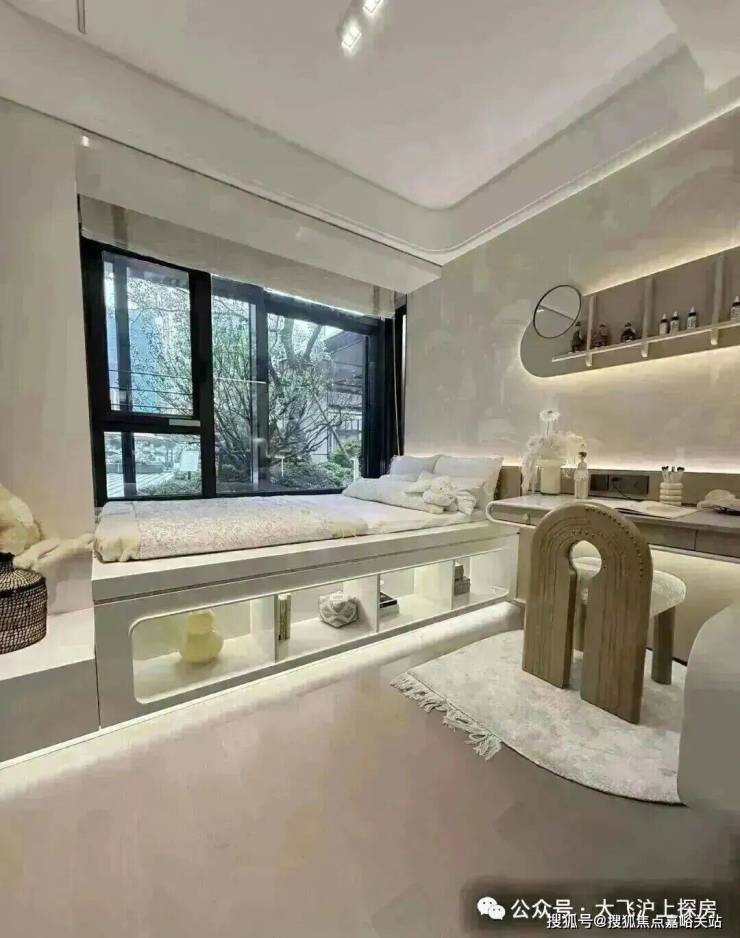 尤其是 主卧大套房安排上独立衣帽间+独卫,配上270度的转角飘窗 ,一扇窗就是一幅流动的四季自然画。