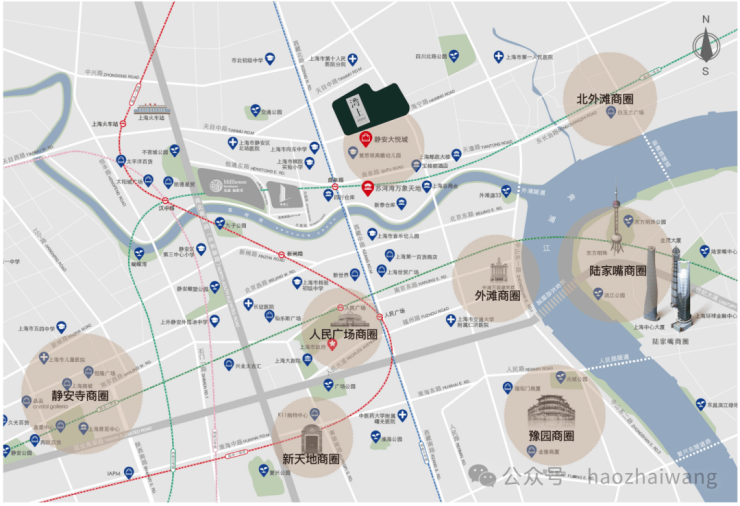 首先,从地图上来看,项目直线距离人民广场仅约1.5公里,外滩、南京东路和南京西路都在2公里范围之内!这也就意味着,上海绝大部分核心的城市地标、商业配套和文化资源全都步行可至,宛如自家的配套!