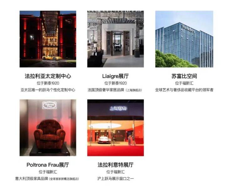 不必担心后续资源的导入,参考开发商龙盛集团在苏河湾的另一个项目【福新汇】,法拉利亚太定制中心、法拉利意特展厅、Liaigre、苏富比空间、Poltrona Frau等国际顶尖资源,龙盛已经向我们展现了其强大的“朋友圈”!