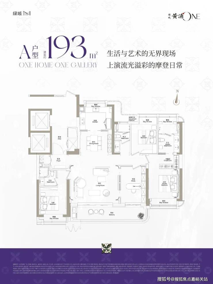 建面约193平方米四房实现270°环幕视野,主卧与客厅双面采光,一体化设计,厨房可开合门消弭边界,适配多代同堂的居住需求^。该户型采用一梯一户布局,子母装甲门配智能门锁,入户玄关铺有杜拜石材,侧面有800库储物间,可存放高尔夫球杆等物品^。客厅面宽达约9米,采用悬浮吊顶,搭配270余度落地玻璃窗,采光充足,南向双联观景阳台,可俯览小区绿化与市政公园^。厨房为U形设计,配备加格纳七件套厨具,水槽为日本进口龙头,可自动出水并温控^。主卧空间宽敞,背景墙设计富有艺术感,带有独立衣帽间和卫生间,配备双台盆、淋浴房和浴缸^。