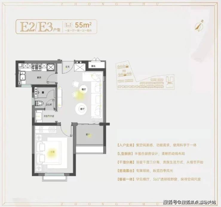 建面约55㎡1房1卫户型,低总价优质上车小户型,做到了双开间朝南+卫生间干湿分离+卧室带飘窗+客餐厅相连,小而美的一个户型。 ☑️☑️春申阳光售楼处电话:400-9975-759☑️☑️