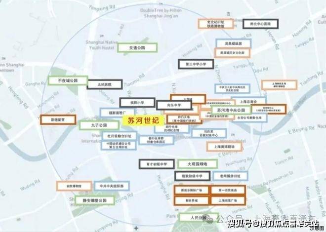 项目地处静安区苏河湾板块,曲阜西路与晋元路交汇处,南接苏州河,东邻爱国主义教育基地四行仓库。项目属于内环内核心区域,与南京东路及人广商圈直线距离约900米,8/12号线曲阜路地铁站距项目直线距离仅约200米,一公里内汇聚城市生活精萃。