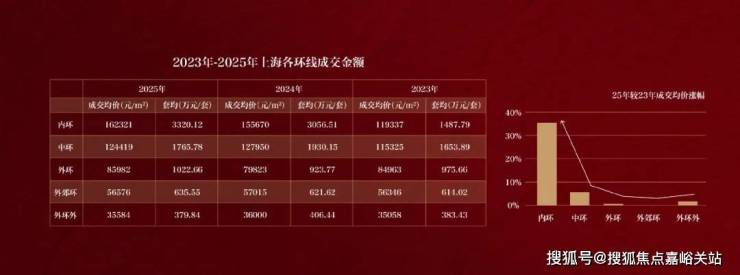 从近三年上海成交数据看,中外环以及外环外成交价格基本保持稳定,内中环稳步上涨,唯独内环内呈现跳涨态势。数据显示,内环内新房成交均价从2023年约11.9万/㎡跳涨到2025年约16.23万/㎡,三年涨幅达到36%。