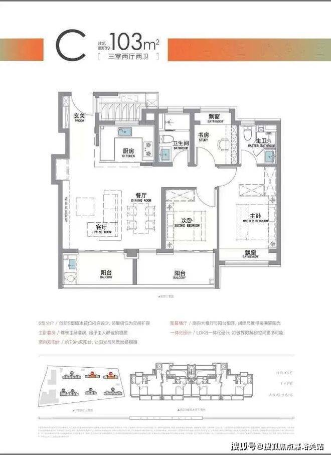 “南向双阳台+南北双飘窗”,构筑真3房户型!