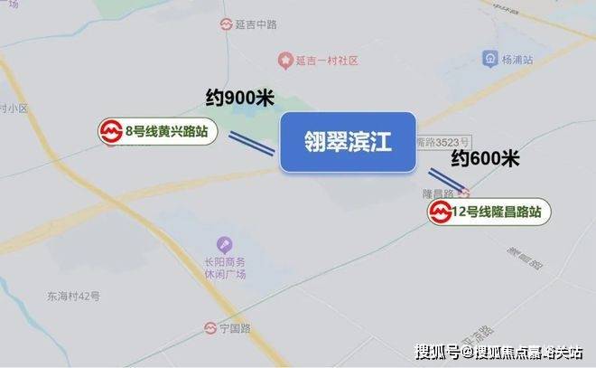 项目南向直线距离12号线隆昌路站约600米,步行可至;北向直线距离8号线黄兴路站约900米,同样步行可至。