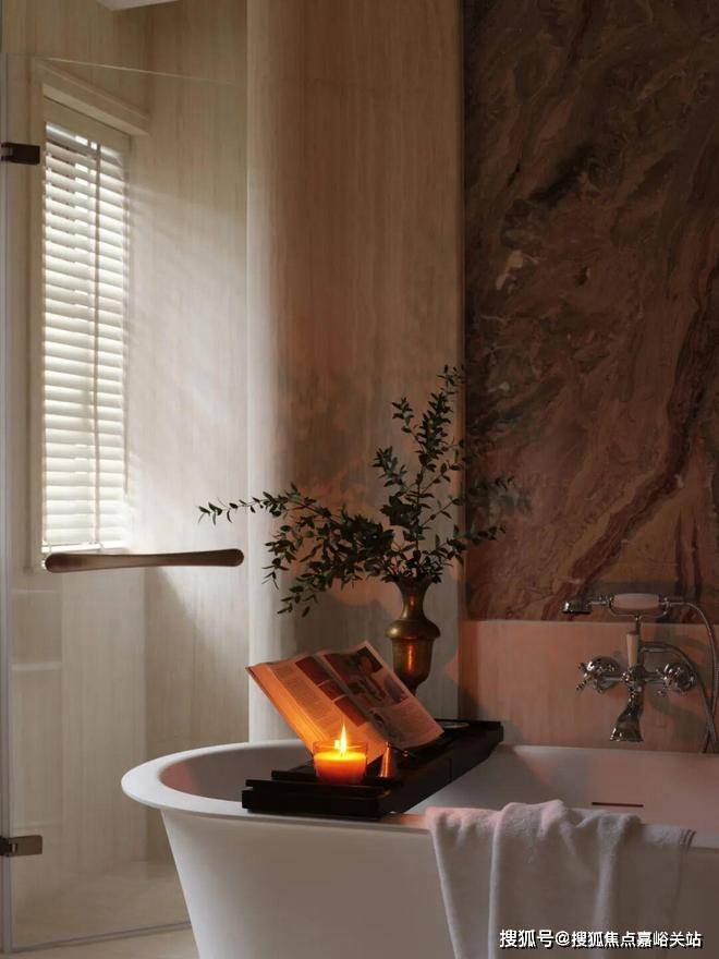 主卫空间弥漫着复古气息,温润大理石赋予空间从容典雅的气质,营造出静谧而舒适的私属氛围。
