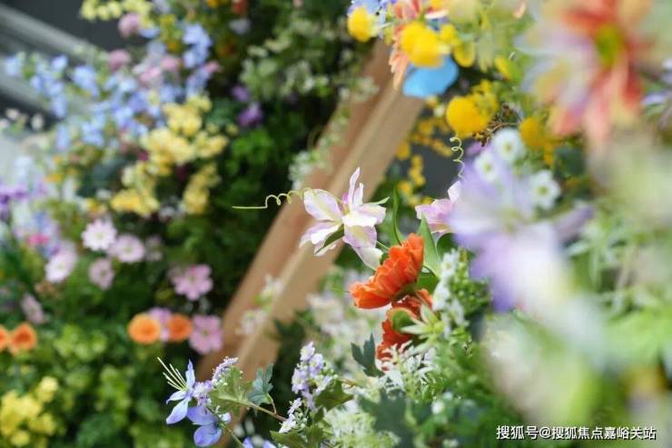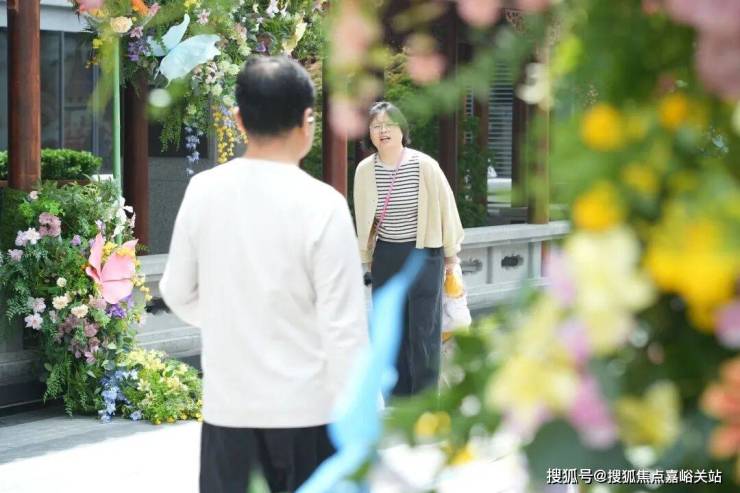 移步池畔,中式亭台廊架更添浪漫氛围。翘角飞檐下,花藤垂坠缠绕,各色蝶形装置随风轻摆,与簇拥的繁花藤蔓浑然一体。传统园林的静谧古意,与现代艺术装置的灵动鲜活完美相融,彻底打破了自然植物与传统建筑的界限。无需刻意找寻角度,随手按下快门,便是一张充满张力的质感大片,定格这份春日限定美好。