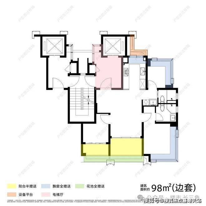 建面约98㎡边套, 一梯一户+全明独立前厅,购房者获得的是一个独立前室,内外双玄关的配置,家的空间,持续延伸。
