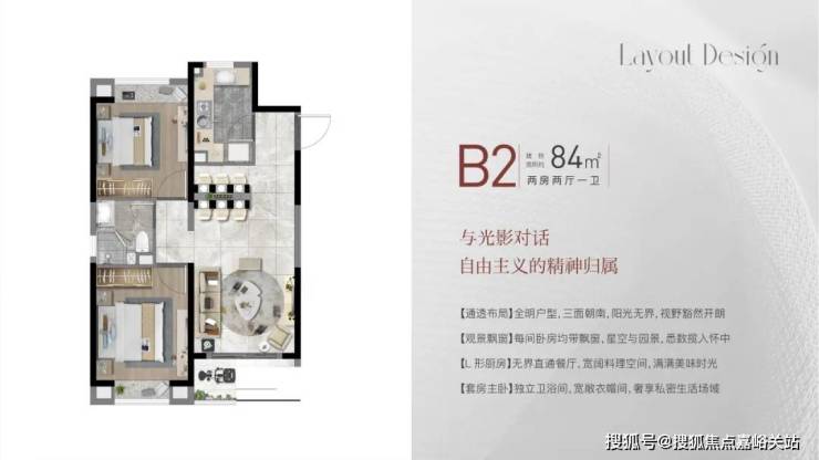 共有4个主力户型,包括建面约84㎡2房2厅1卫,约99㎡3房2厅2卫,约108㎡3房2厅2卫,约130㎡4房2厅2卫,户型设计的非常棒!